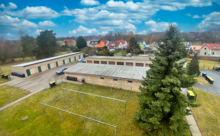 Die massiv gebaute Garage bietet Platz für einen Pkw. Das Schwingtor ist mit einem Elektroantrieb ausgestattet. Weitere Stellflächen sind im Bereich der öffentlichen Straße vorhanden.