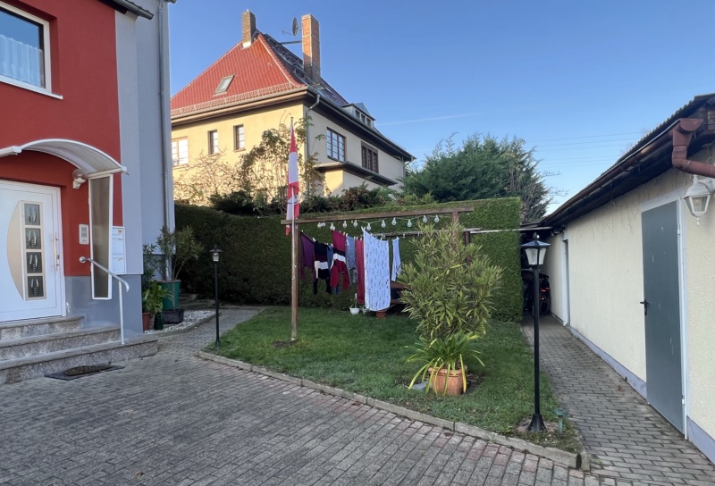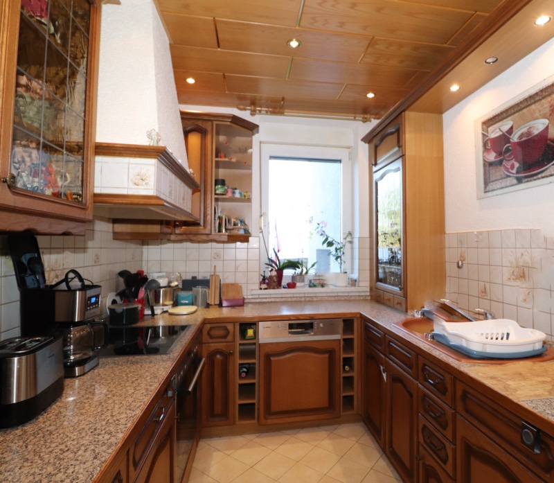 Für zusätzlichen Stauraum steht ein Abstellraum auf der halben Treppe, ein Kellerraum sowie die Hälfte des Dachbodens zur Verfügung. Bei Sonnenschein kann der Wäschetrockenplatz auf dem gepflegten Innenhof genutzt werden. Hier ist auch ein Bereich für die Mülltonnen sowie für Fahrräder vorhanden. In der Doppelgarage finden 2 PKW einen Stellplatz. Die Schwingtore sind elektrisch betrieben. Weitere Stellflächen stehen im Bereich der öffentlichen Straße zur Verfügung.