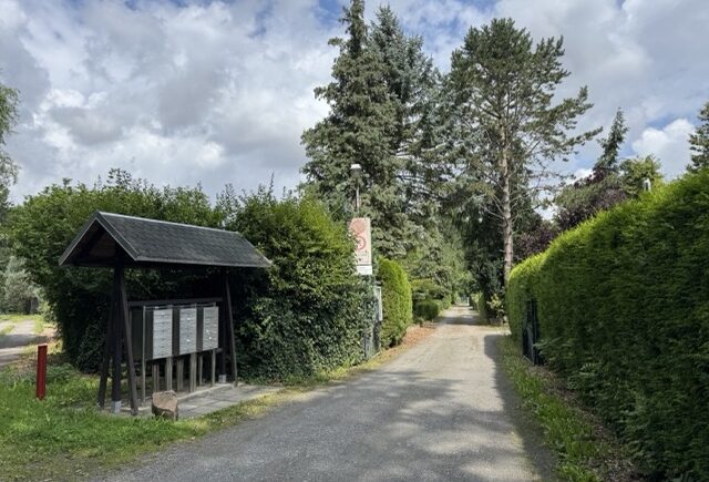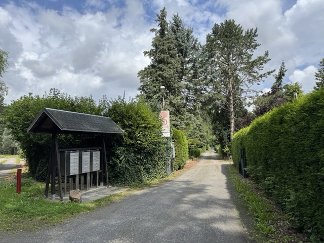 Das Wochenend-Grundstück befindet sich in der Siedlervereinsanlage nahe dem Kirchbruch Beucha und ist über eine Zufahrt von der Brandiser Straße zugänglich.
