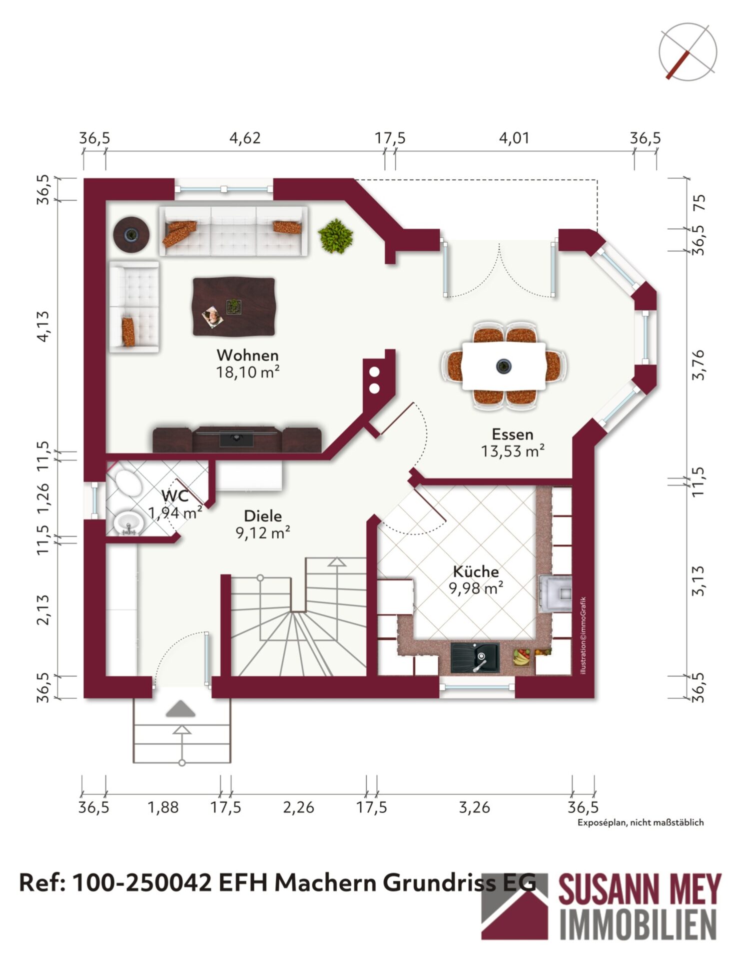 Der genannte Kaufpreis dient lediglich zur Information darüber und stellt kein verbindliches Angebot dar. Irrtum und Zwischenverkehr vorbehalten. Dieses Exposé ist eine Vorabinformation, als Rechtsgrundlage gilt allein der notariell abgeschlossene Kaufvertrag. Mit der notariellen Beurkundung des Kaufvertrages ist eine Provision vom Käufer und Verkäufer jeweils in Höhe von 3,57% des Kaufpreises inkl. 19% MwSt. an Susann Mey Immobilien fällig.
