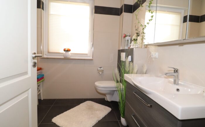– Tageslichtbad mit bodentiefer Dusche, Waschtisch und WC