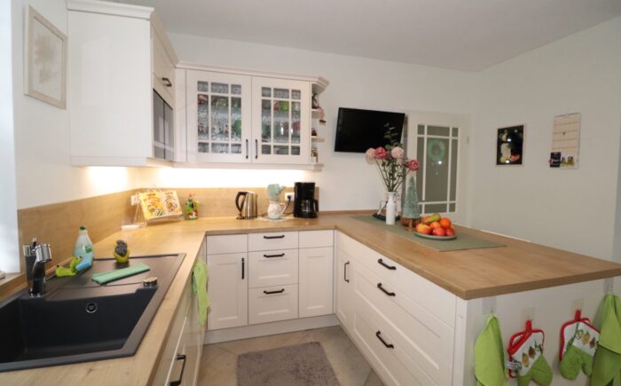 – Küche mit Einbauküche/E-Geräten – Ausgang zur Terrasse
