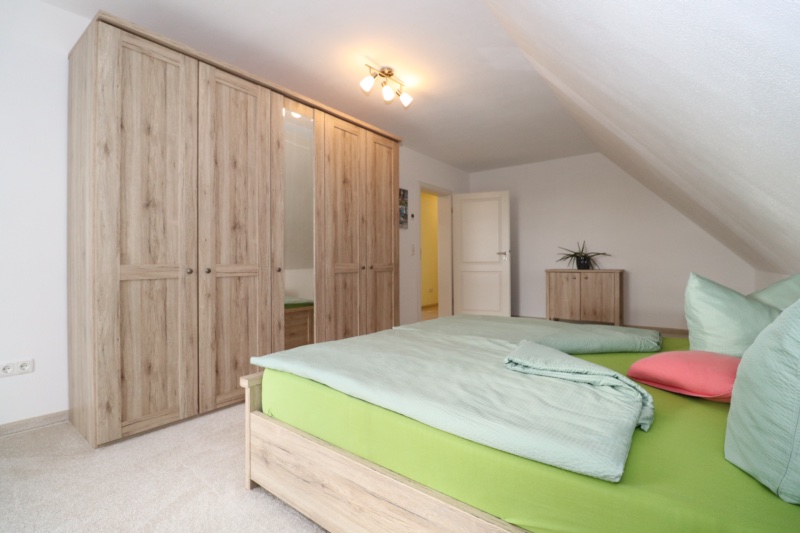 Im Dachgeschoss erwarten Sie drei helle Räume, die flexibel als Kinder-, Gäste- oder Arbeitszimmer genutzt werden können. Ein weiteres Tageslichtbad mit Badewanne, WC und Waschtisch rundet das Angebot in dieser Etage ab. Zusätzlichen großen Stauraum eröffnet der Spitzboden mit Zugang über eine aufklappbare Bodentreppe im Raum Kind 3.