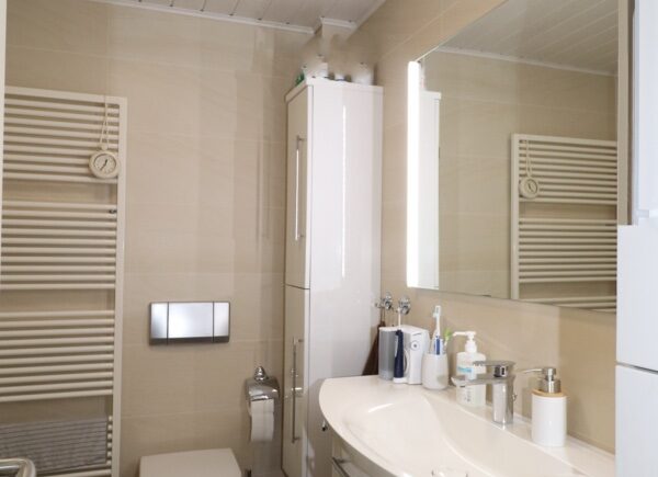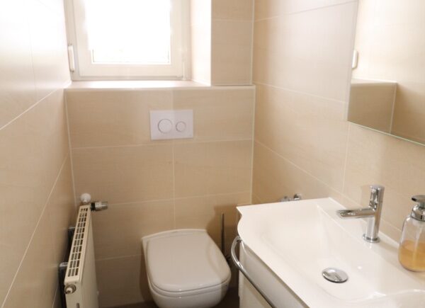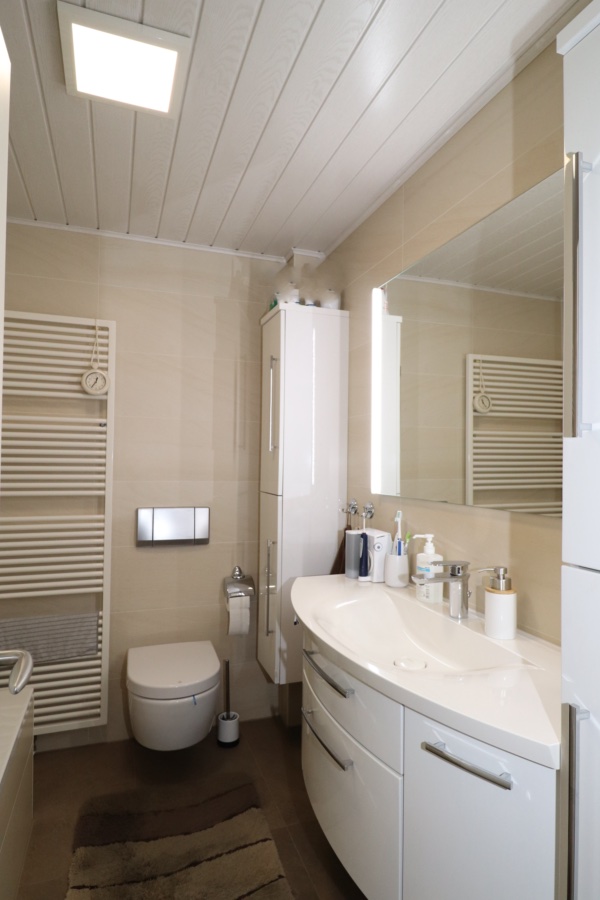 Die Zentralheizung wurde mit einer Brennwerttherme/Erdgas in 2012 modernisiert und befindet sich im Keller des Hauses. Das Kellergeschoss bietet echten Mehrwert – ein geräumiger HAR mit viel Stauraum, der Wasch-Trockenkeller ist heute kombiniert mit Fitness sowie die Werkbank im Flur ist ideal für Hobby, Haus und Garten. Ein separater Ausgang führt in den hübsch angelegten Garten mit gemütlicher Terrasse und Sonnenmarkise. Sichtschutz kombiniert mit grünen Raritäten u.a. einer schmackhaften exotischen Kiwi versprühen mediterranes Flair.