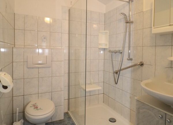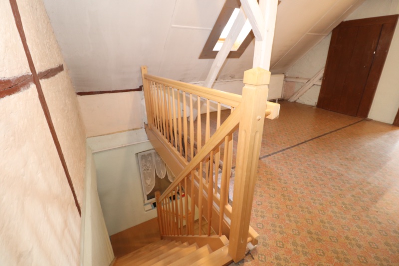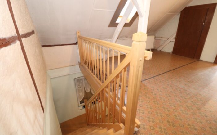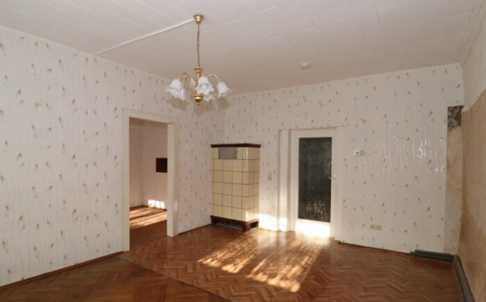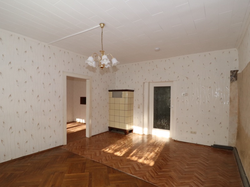 Das nicht unterkellerte Wohnhaus wurde ca. 1860 in massiver Bauweise errichtet und seit den 1990er Jahren stetig modernisiert – Dachneueindeckung, Heizungsumbau, Fassadendämmung, Kunststofffenster mit Außenrolladen, Badsanierung und Einbau einer neuen Holzinnentreppe. Auf einer Gesamtwohnfläche von ca. 123 m² sind im Erdgeschoss ein Wohn-/Esszimmer, ein Bad mit Dusche sowie eine Küche mit Speisekammer vereint. Ein klassischer Kachelofen sorgt an kalten Tagen für behagliche Wärme. Von der geräumigen Diele im Erdgeschoss führt ein Übergang ins Hinterhaus mit Flur und zwei Kinderzimmern. Der Wohnbereich im Obergeschoss mit einer Raumhöhe von ca. 2,15 m umfasst ein geräumiges Schlafzimmer mit separatem Stauraum, eine Ankleide sowie ein Gäste- oder Arbeitszimmer. Für die Verwirklichung heutiger Wohnwünsche sind Sanierungsarbeiten erforderlich.