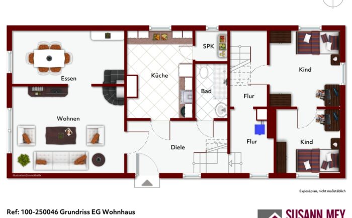 Der genannte Kaufpreis dient lediglich zur Information darüber und stellt kein verbindliches Angebot dar. Irrtum und Zwischenverkehr vorbehalten. Dieses Exposé ist eine Vorabinformation, als Rechtsgrundlage gilt allein der notariell abgeschlossene Kaufvertrag. Mit der notariellen Beurkundung des Kaufvertrages ist eine Provision vom Käufer und Verkäufer jeweils in Höhe von 3,57% des Kaufpreises inkl. 19% MwSt. an Susann Mey Immobilien fällig.